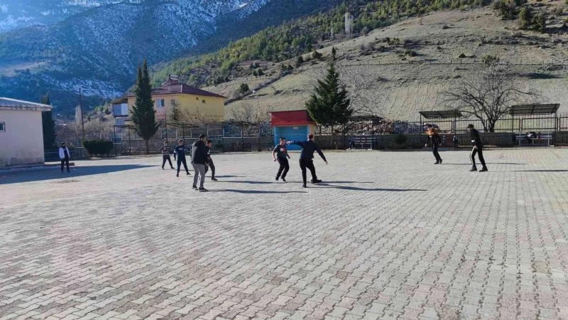 Adana’nın Saimbeyli ilçesinde Kaymakam Mehmet Fatih Kesitoğlu ilçesinde okul bahçesinde maç yapan öğrencilerin futbol heyecanına ortak oldu.