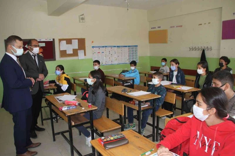 Daha sonra hem ilköğretim hem de orta öğretim sınıflarını gezen Kaymakam Demirer, öğrencilere okulların bir daha kapanması için mutlaka korona virüs tedbirlerine uyulması gerektiğini belirtti. Kaymakam Demirer, "Sevgili öğrencilerimiz, bildiğiniz üzere ülkemizde ve dünyada koronavirüs var. Bu korona virüsten korunmamız için mutlaka maske, mesafe ve temizlik kurallarına uymamız lazım. Sizler maske ve mesafe kurallarına uyarak derslerinize çalışın. Sizleri devletimizin en yüksek mevkilerinde görmek istiyoruz. Bu yüzden çok çalışıp çok okuyun. Okuldan çıkıp evlerinize gider gitmez kesinlikle hiçbir yere temas etmeden ellerimizi yıkayalım sonra oturalım. Eğer okullarımızın kapanmasını bir daha istemiyorsak, mutlaka korona virüs tedbirlerine uymamız lazım" dedi.