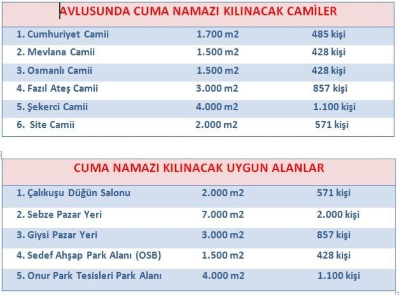 Cuma namazının ilçe merkezi ve köylerinde yeterli bahçesi ve uygun camilerde kılınabileceğinin altını çizen Kaymakam Deniz Pişkin, “İçişleri Bakanlığımızın 22 Mayıs 2020 tarihli “Cami ve Mescitlerde Cemaatle İbadet Edilmesi Genelgesi’ doğrultusunda, Tosya merkezde cuma namazı kılınacak camiler ile cuma namazı kılmaya uygun diğer alanlar aşağıdaki şekilde tespit edilmiştir. Köylerimizde ise, cami bahçesi, alanı sosyal mesafeye uygun olan yerlerde cuma namazı kılınacaktır. Cuma namazında maske takmak zorunludur. Saf düzeni sosyal mesafeye uygun olacaktır. Her vatandaşımız kendi seccadesini getirecektir. Abdesthane ve tuvaletler kapalı olacağından evlerinizde veya iş yerlerinizde abdest almanız gerekmektedir. 65 yaş ve üstü büyüklerimiz ile 20 yaş altı çocuk ve gençlerimizin sokağa çıkması yasak olduğu için evlerinde kalmalarını rica ediyoruz. Cuma namazı için belirlenen yerlerin cemaat sayısı, alanların tabloda belirtilen kapasiteleriyle sınırlı tutulacaktır. Kurallara uymayanlara Hıfzıssıhha Kanununa göre 3.150 TL idari para cezası uygulanacaktır” diye konuştu.