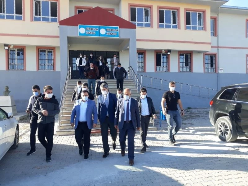İlçe Milli Eğitim Müdürü Zeki Gülmez’in de eşlik ettiği Kaymakam Yusuf Durani Dinç ile Belediye Başkanı Şefik Ensari, idareci ve öğretmenlerle yaptıkları toplantıların ardından ilçe merkezine döndüler.