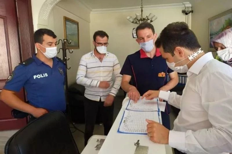 Kaymakam Buğra Karadağ, İlçe Emniyet Amiri Ferdi Osman Çetinel ve Hastane Başhekim vekili Dr. Mücahit Kartal ile birlikte iş yerlerinde Covıd-19 salgın hastalığına karşı alınan tedbirleri denetledi.