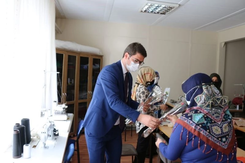 Gerçekleştirilen ziyaretlerde İlçe Kaymakamı kadınlara Karanfil takdim etti.