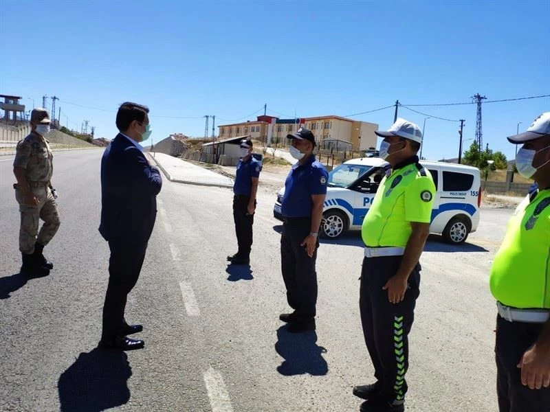 Kaymakam Ahmet Özdemir, Kurban Bayramı dolayısıyla memleketlerine gelip de geri dönüş yapan sürücüleri kontrol eden güvenlik kuvvetlerini uygulama ve yol kontrol noktalarında denetledi.