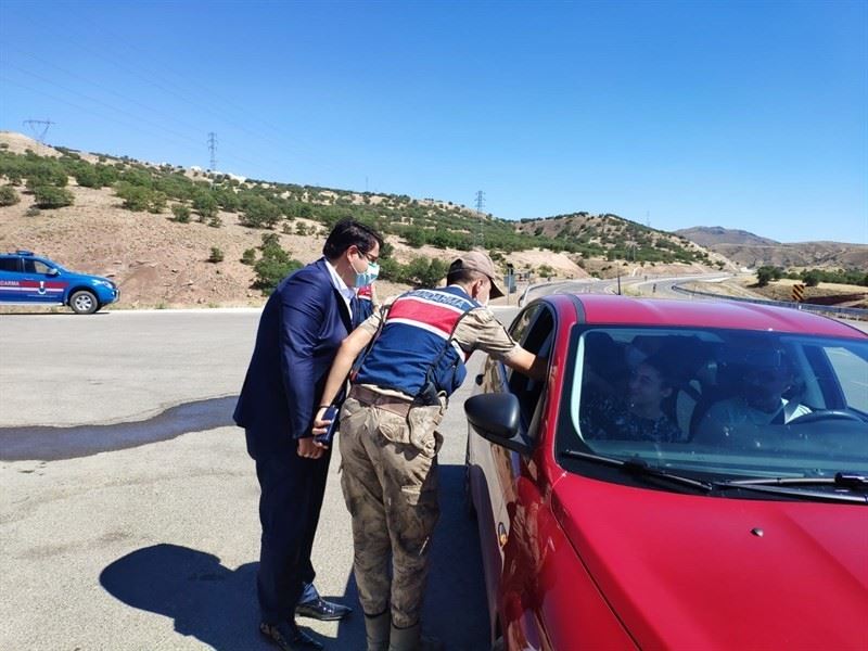 Malatya’nın Hekimhan ilçesinde, Kurban Bayramı sonrası dönüş yapan gurbetçi yolcuların kontrollerine bir süre Kaymakam Ahmet Özdemir de katıldı.