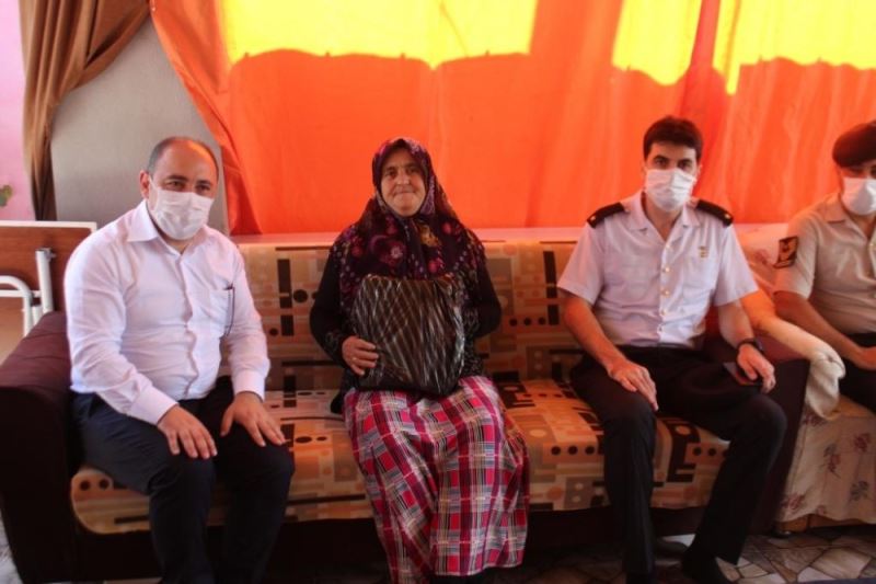 Kaymakam Ömer Sağlam Covid 19 salgını nedeniyle, şehit aileleri ve gazilere maske, kolonya ve bayram çikolatası hediye etti.