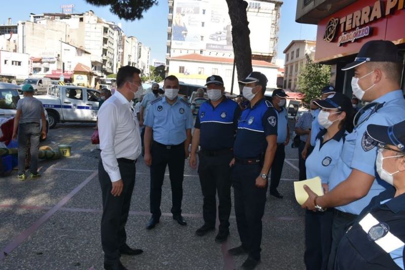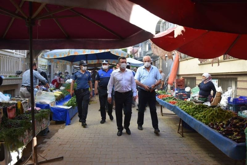 Efeler Kaymakamı Cemal Şahin Korona virüs sürecinden sonra bugün yeniden açılan Salı pazarını denetledi. Kaymakam Şahin vatandaşlara ve esnaflara hijyen ve sosyal mesafe kurallarına dikkat etmeleri yönünde uyarılarda bulundu.