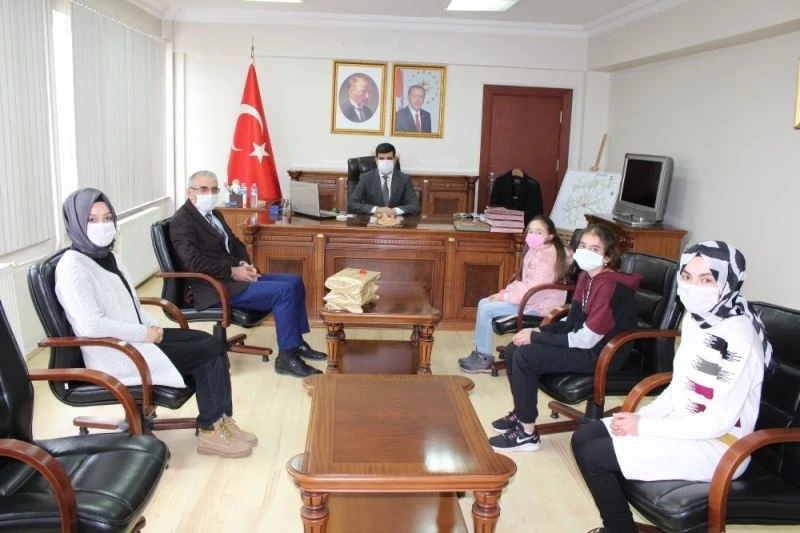 Kaymakam Şenkon, öğrencileri tebrik edip hediyelerini vererek, öğrencilerle kitap okumanın faydaları üzerine bir süre sohbet etti.