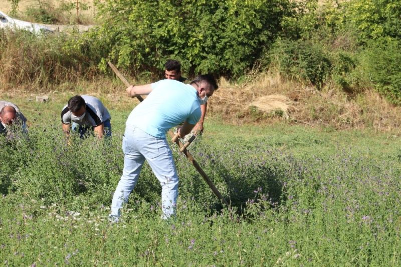 Yaz dönemi ile birlikte çiftçilerin artık hasada başladığını aktaran Kaymakam Solmaz, "Bugün çiftçilerimizin yanında bulunmak istedik. Hem yonca hem arpa hasadını yapan çiftçilerimizle birlikte orak tuttuk, tırpan salladık. Onların yanında olduğumuzu hissettirmeye çalıştık. Son dönemlerde ilçede tarım ve hayvancılık noktasında büyük atılımlar var. Biz kaymakamlık olarak her zaman çiftçilerimizin yanında olduk. Pandemi sürecinde üretime odaklanarak ekonomik anlamda sürecin olumsuz etkilerini azaltmaya gayret ediyoruz" dedi.