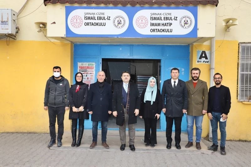 Kaymakam Tunç beraberinde İlçe Milli Eğitim Müdürü Şahan İke ve Cizre Kuyumcular Derneği Başkanı İhsan Güneş ile birlikte İsmail Ebul – İz İmam Hatip Ortaokulunu ziyaret etti. Kaymakam Tunç, okul binasında yaptığı incelemenin akabinde İsmail Ebul – İz İmam Hatip Ortaokulu Müdürü Mahbiye Babayiğit eşliğinde sınıfları gezerek, öğrencilerle bir araya geldi. Öğrencilerle hasbihal eden Kaymakam Tunç, öğrencilerin kendilerine hedef koymalarını, sene boyunca planlı programlı çalışmalarını, kendilerine, öğretmenlerine, arkadaşlarına ve ebeveynlerine karşı saygılı olmaları yönünde nasihatlerde bulundu. Öğrencilere Ord. Prof. Dr. Ali Fuad Başgil’in ‘Gençlerle Başbaşa’ adlı kitabını hediye eden Kaymakam Tunç, iyi tatiller dileğinde bulundu.