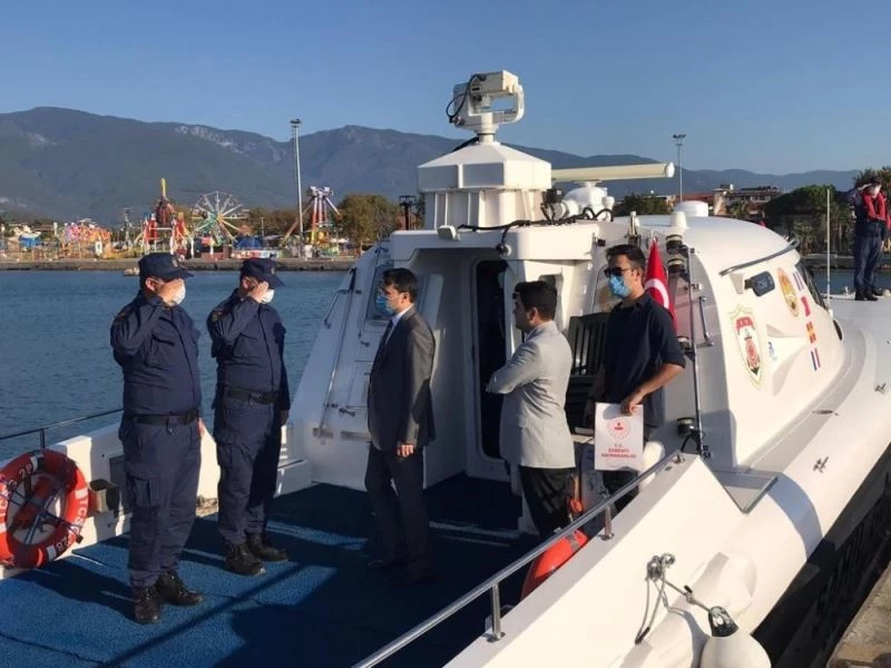 Balıkesir’in Edremit ilçesi Kaymakamı Turgay Ünsal, Sahil Güvenlik Botu ile ilçenin sahil bölgelerini denizden denetledi.