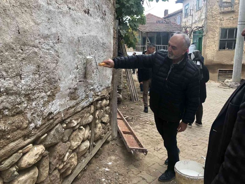 Bilecik’in İnhisar ilçesinde bir proje kapsamında kaymakam ve belediye başkanı fırçayı eline alarak, camları boyadı