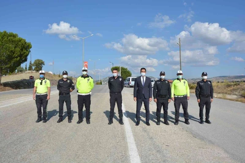 Selendi Kaymakamı Ali Yıldırım, jandarma ve polis uygulama noktasını ziyaret ederek, sürücülere trafik kurallarına uymaları konusunda hatırlatmalarda bulundu.