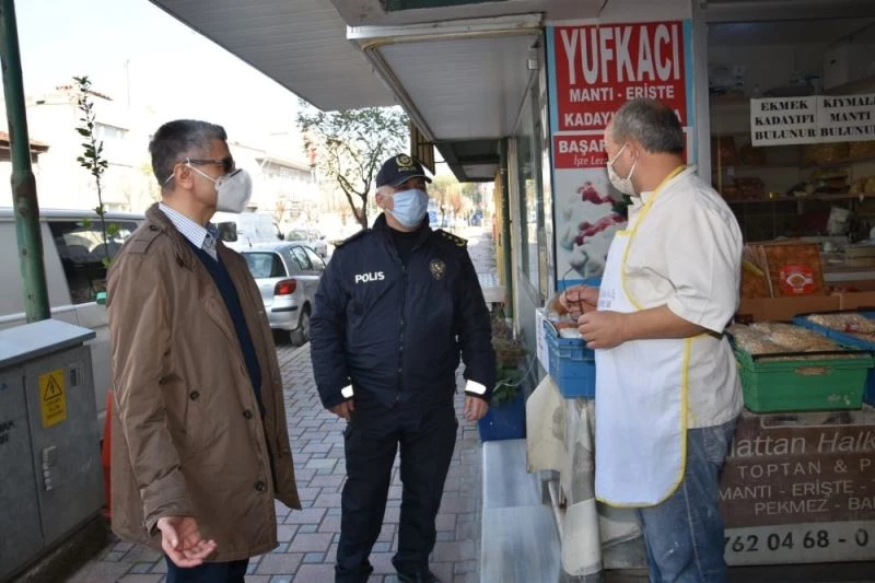 İlçe Kaymakamı Arslan Yurt, Jandarma Komutanı Jand. Yrb. Temel Kılıç ve Emniyet Müdürü Ali Haydar Kılıç ile birlikte ilçe merkezinde kısıtlamada esnafın ve vatandaşların kurallara uyup uymadıklarını denetlediler.