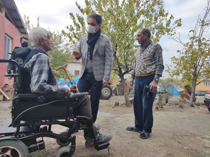 Tunceli’nin Çemişgezek ilçesi Kaymakamı Mehmet Güder, daha önce evinde ziyaret ettiği bedensel engelli 55 yaşındaki Nazir Gündoğdu’yu 3 Aralık Dünya Engelliler Günü nedeniyle tekrar evine giderek akülü tekerlekli sandalye hediye etti.