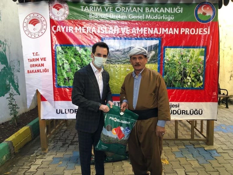 Şırnak’ın Uludere Kaymakamı Mehmet Rıdvan Doğan, ilçe tarım ve orman müdürlüğü bahçesinde ’Çayır Mera Islah ve Amenajman Projesi’ kapsamında 150 çiftçiye sertifikalı yem bitkileri tohumu dağıttı.