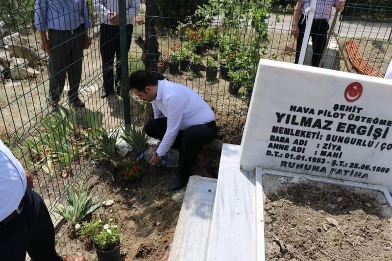 Konuya ilişkin olarak yapılan açıklamada, ’Kahramanlara Vefa’ adı altında gerçekleştirilen çalışma kapsamında köylerimizde bulunan Şehit kabirlerinin çevre düzenleme faaliyetlerini yürütmek üzere kamu kurumlarımız görevlendirilmiş; Kaymakamlığımız Cevheri Köyünde Şehit Uğur Yaldıran ve Şehit Yılmaz Ergişi, İlçe Jandarma Komutanlığı Ayağıbüyük Köyünde Şehit Zeki Kuzolukoğlu, İlçe Emniyet Müdürlüğü Akpınar Köyünde Şehit Hüseyin Göktaş, İlçe Milli Eğitim Müdürlüğü Küçükincesu Köyünde Şehit Ahmet Demirhan, Kaledere İlkokulu Müdürlüğü Kaledere Köyünde Şehit Satılmış Körkem ve Şehit Fazlı Kesekler, Eşme İlkokulu Müdürlüğü Eşme Köyünde Şehit Mehmet Kakız, Ahmet Koz Ortaokulu Müdürlüğü Hacıosman Köyünde Şehit Beyhan Köse, Demirşeyh İlkokulu Müdürlüğü Demirşeyh Köyünde Şehit Beytullah Gedik, İlçe Müftülüğü Küçükpolatlı Köyünde Şehit Şahin Erkan, İlçe Tarım ve Orman Müdürlüğü Alembeyli Köyünde Şehit Adem Tut, Sungurlu Devlet Hastanesi Baştabipliği Yörüklü Köyünde Şehit Mesut Bağıröz, İlçe Sağlık Müdürlüğü Gökçam Köyünde Şehit İlker Sabancılar, İlçe Vergi Dairesi Müdürlüğü Ekmekçi Köyünde Şehit Yusuf Yıldırım, İlçe Gençlik ve Spor Müdürlüğü Gökçe Köyünde Şehit Mahir Doğanlaroğlu, Sungurlu SYDV Kula Köyünde Şehit Numan Altuntaş, İlçe Özel İdare Müdürlüğü Çamoluk Köyünde Şehit Tekin Şimşek, Kadastro Birimi Akdere Köyünde Şehit Abbas Kızılarslan ve Orman İşletme Şefliği Balkaya Köyünde Şehit Celal Turan’ın Kabirlerinin düzenlenmesi için görevlendirilmiştir.