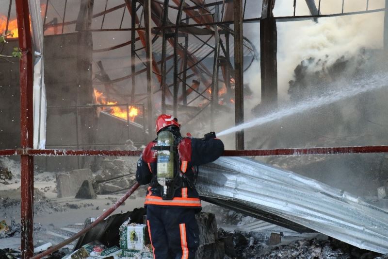 Kaynak makinesinden çıkan yangın süpermarketin deposunu küle çevirdi
