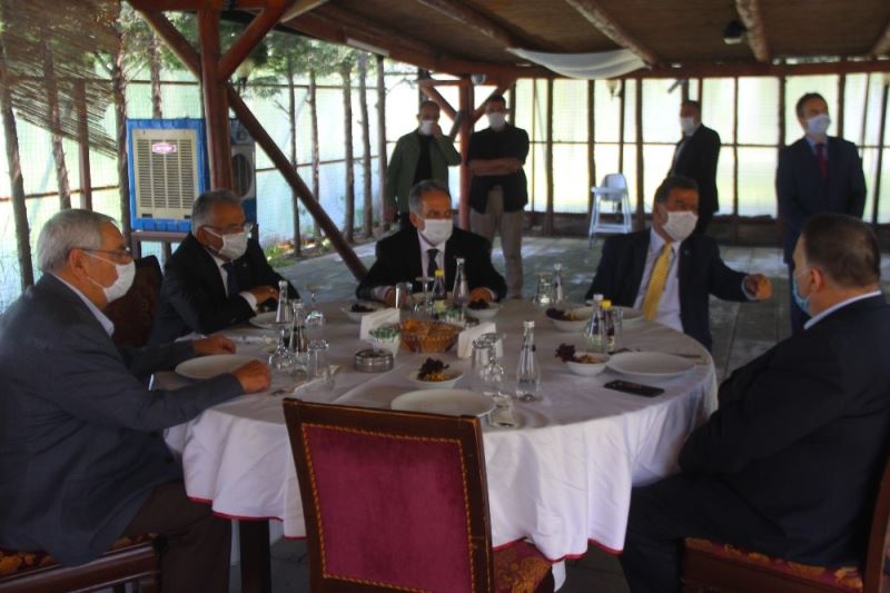 Bundan sonraki süreçte daha fazla icraat yapacaklarını söyleyen Kayseri Büyükşehir Belediye Başkanı Memduh Büyükkılıç” Haziran ayı başı itibari ile yeni bir süreç başladığından dolayı bizler buradayız. Kayserimizin uyum kültürü içerisindeki hem mensuplarına hem de yöneticilerine teşekkür ediyorum. Biz bu anlayış içerisinde Kayseri’den hep destek gördük ve sorun aşma yönünde de iyi niyetli bir yaklaşım sergilendiğini gözlemledik. Bu süreçte elbette daha dikkatli olmamız lazım ve yeni dönemdeki kurallara uymamız lazım. Maske, mesafe ve temizlik. Yeni dönemdeki bilim kurullarının önerisi ve Hıfzıssıhha kurulunun aldığı kararla doğrultusunda yeme içme mekanlarımız hizmet sektöründeki kardeşlerimiz bu kuralları azami uyaracaklar ve insanımıza sıkıntı oluşturmayacak. Türkiye geneli değerlendirildiğinde Kayserimizin ortalamanın altında olduğunu hep beraber değişik zamanlarda söyledik ve paylaştık. Kayserimizi bu süreçte sıfıra indirgemek bizlerin elindedir. Hep beraber gayret gösterip kurallara uyarsak bu sıkıntılar ile tekrar buluşmayız. Şehir merkezi itibari ile son noktada iyi bir konumda olduğumuzu paylaşmak istiyorum. Ancak bazı çevreden gelen vakalar nedeni ile Kayserimizde görülen vakalar olduğunun bilinmesini isterim. Bizler bu süreçte ihmale fırsat vermemek durumundayız. Belediye olarak ilçe belediyelimiz ile iş birliğinde ve odalarımız ile birlikte iş birliği başlatıyoruz. Akıllı şehir projesi bağlamında kuaförlerimiz, berberlerimiz, yeme içme mekanlarımız, taksicilerimiz bütün bu kesimlerin hem eğiteceğiz hem de bu kurallara uyup uymadığı ile ilgili bir bakıma değerlendirme sonucunda levhalar ya da bayraklar ile uyarma şeklinde o insanları korona sürecinde ve sonrasında kurallara uyduğunu içeren yaklaşım çerçevesin de onlarla ilgili paylaşımlarda bulunacağız. Bundan sonraki süreçte az konuşmak çok icraat yapma mantığı ile hepimizin yapması gereken ana felsefemiz olacaktır“ dedi.