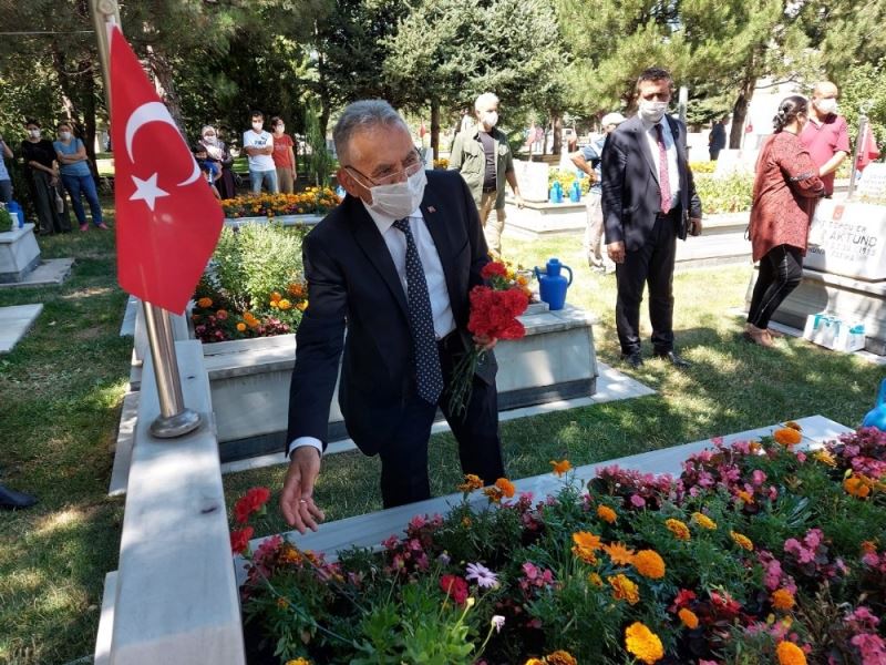 Kayseri protokolü şehitliği ziyaret etti, şehit mezarlarına karanfil bıraktı