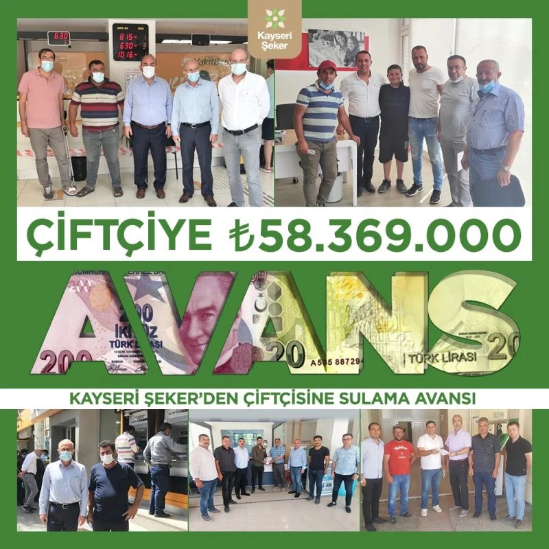 Kayseri Şeker, kurak geçen mevsim koşulları ve zorlu ekim şartlarında üretim yapmaya çalışan pancar üreticilerine 58 milyon 369 bin liralık Sulama Avansı ödeyerek, çiftçinin yanında olmaya devam ediyor.