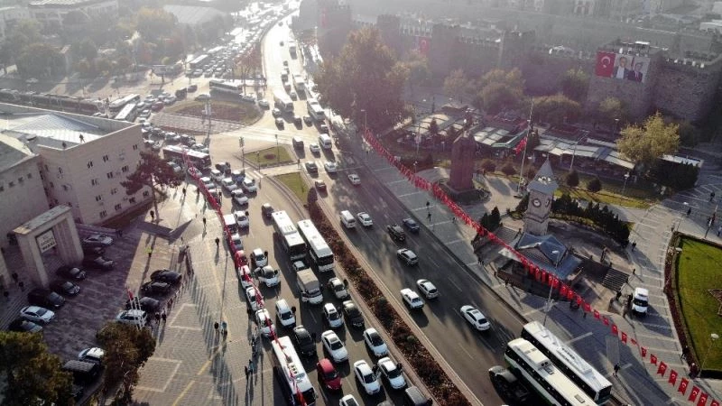 KAYSERİ (İHA) –Atatürk’ün ebediyete intikal edişinin 82. yıl dönümünde saat 09.05’te Kayseri’de hayat durdu. Vatandaşların işlerini bırakıp saygı duruşuna geçmeleri de havadan görüntülendi.