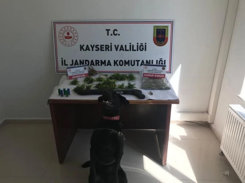Edinilen bilgiye göre İl Jandarma Komutanlığınca yürütülen asayiş faaliyetleri kapsamında; Tomarza İlçesinde R.Ç.’nin evinde yapılan aramada 100 gram kubar esrar, 20 kök kenevir, 1 adet uyuşturucu kullanım aparatı ve 1 adet ruhsatsız av tüfeği ele geçirildi. Olayla ilgili R.Ç. gözaltına alındı.
