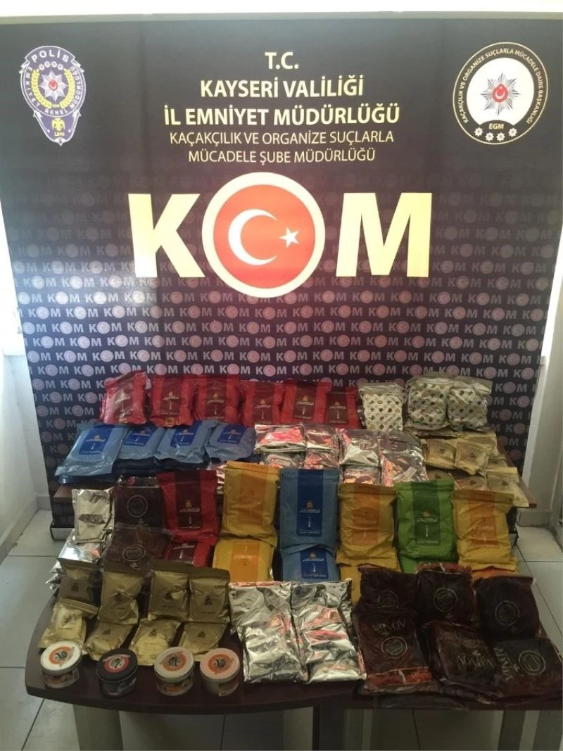 Kayseri İl Emniyet Müdürlüğü Müdürlüğü Kaçakçılık ve Organize Suçlarla Mücadele Şube ekipleri tarafından yapılan çalışmalarda 111 kilo kaçak nargile tütünü ele geçirildi.