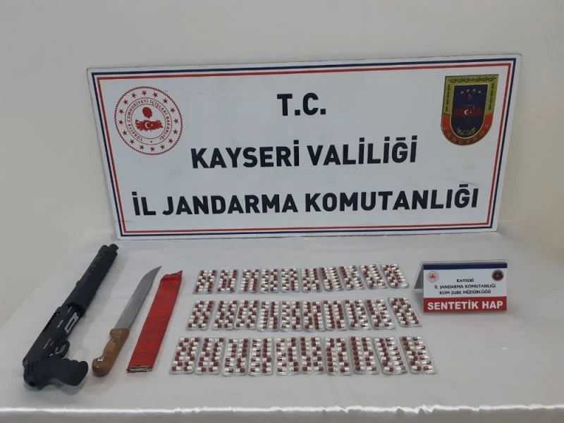 Kayseri İl Jandarma Komutanlığı ekiplerince yapılan çalışmalarda 400 adet sentetik uyuşturucu hap ele geçirildi.
