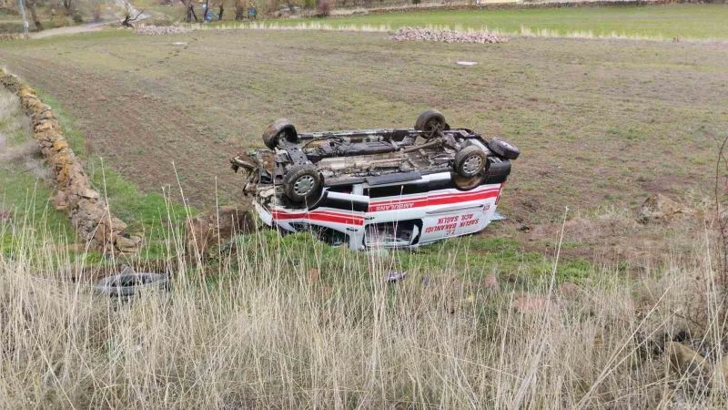 Kayseri’nin Tomarza ilçesinde sürücüsünün direksiyon hakimiyetini kaybettiği ambulans şarampole devrilerek takla attı. Kazada 2 sağlık personeli ve şoför yaralandı.
