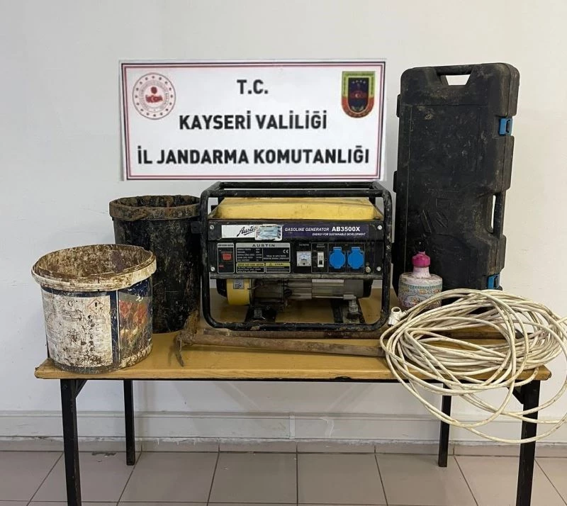 Kayseri’de jandarma ekipleri tarafından yapılan çalışmalarda; izinsiz kazı yaptıkları tespit edilen 3 şahıs gözaltına alınırken, kazıda kullanılan çok sayıda malzeme ele geçirildi.