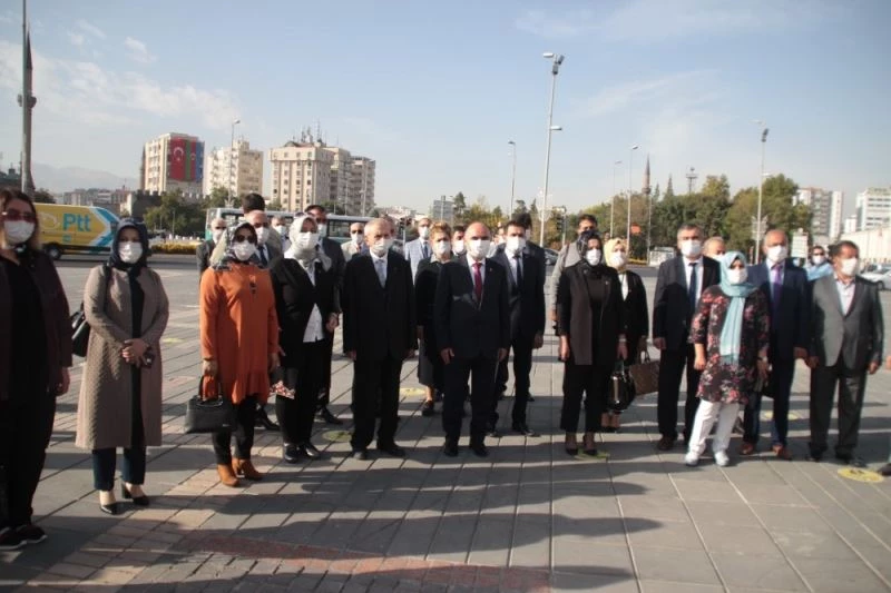 Kayseri’de muhtarlar, 19 Ekim Muhtarlar Günü dolayısıyla düzenlenen törende Atatürk Anıtı’na çelenk bıraktı.