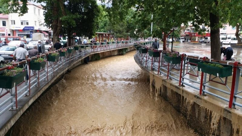 Kayseri’nin Yahyalı ilçesinde etkili olan sağanak yağış, sel baskınlarına neden oldu.