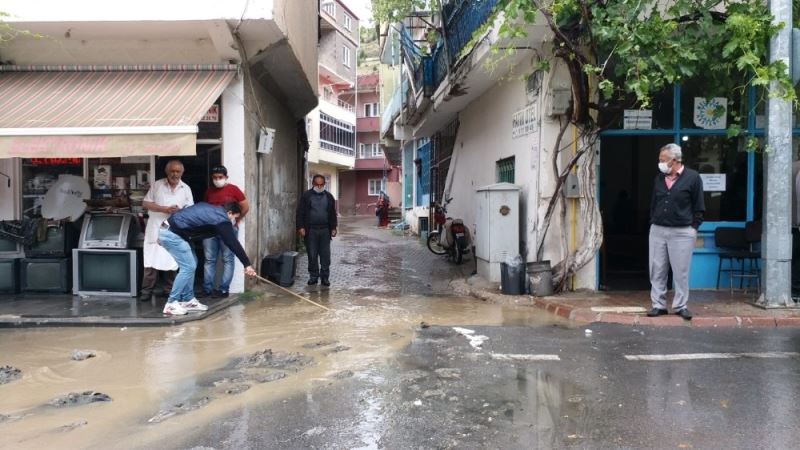 İlçeye bağlı Derebağ mevki’inde öğle saatlerinde yağmur ve dolu yağışı oldu. Yağışın şiddetini arttırmasının ardından, ilçede bulunan dere yatakları taşarak mahallelerde ve iş yerlerinde su baskınlarına neden oldu. Belediye ekipleri de vatandaşların yaralarını sarmak için çalışma başlattı.
