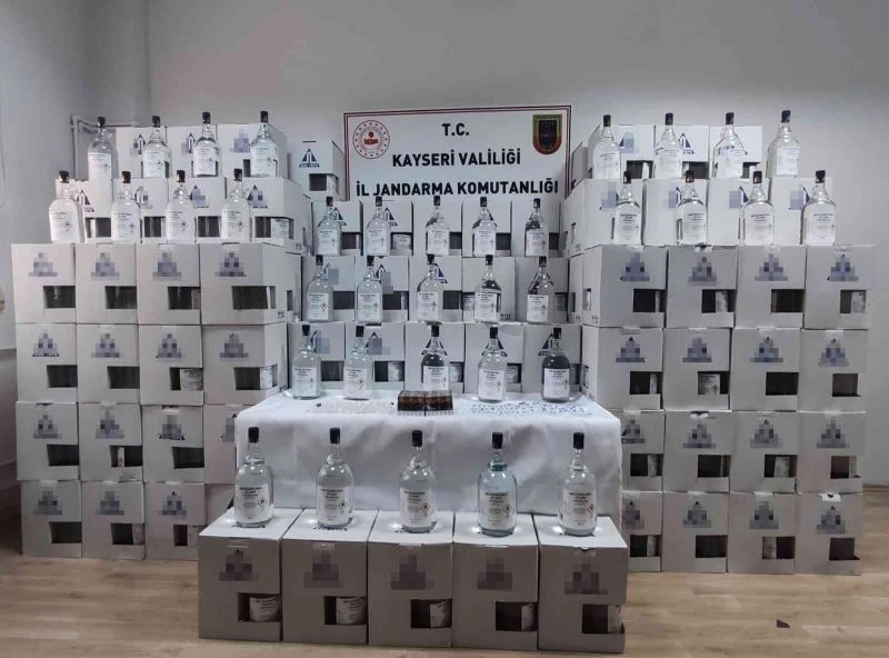 Kayseri’de jandarma ekipleri tarafından düzenlenen sahte içki operasyonunda 2 ton 68 kilo etil alkol ele geçirildi.