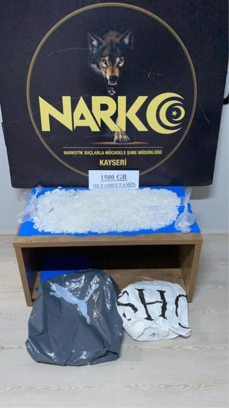 Edinilen bilgiye göre, Kayseri İl Emniyet Müdürlüğü Narkotik Suçlarla Mücadele Şube Müdürlüğünce yapılan çalışmalar neticesinde U.U.’nun İstanbul’dan uyuşturucu madde getireceği istihbaratı üzerine ekipler harekete geçti. U.U.’nun bulunduğu aracı OSB uygulama noktasında tertibat alarak durduran ekipler, yaptıkları aramada 1.5 kilogram metamfetamin maddesi ele geçirdi.