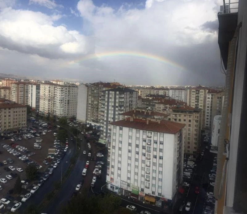Öğleden sonra şehrin büyük bir bölümünde etkili olan yağış sonrasında oluşan gökkuşağı büyük dikkat çekti.
