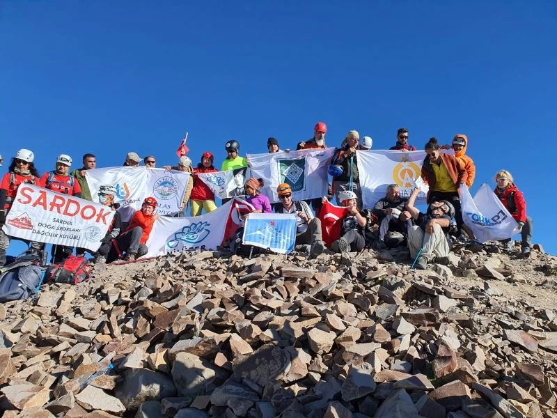 Tırmanışı tamamlayan dağcılar zirvede Türk Bayrağı açtı.