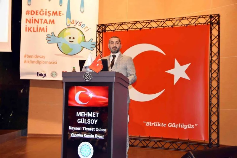 Son dönemlerde sıkça duyulan iklim değişikliği, karbon salınımı, kuraklık, yeşil mutabakat gibi kavramların ne anlama geldiği ve hayatımızı nasıl etkilediğini daha net anlayabilmek adına bu forumu düzenlediklerini aktaran Mehmet Gülsoy, "İklim değişikliğine karşı değişmek zorundayız. Elbette bireysel yükümlülük yanında küresel dayanışmaya da ihtiyacımız var. Avrupa Birliği, Paris İklim Anlaşması’nın hedeflerine ulaşmak için Türkiye dahil tüm ortaklarla birlikte çalışıyor. Özellikle üretim ve ticaret bacağını etkileyen ’Yeşil Mutabakat’ noktasında bizim gibi kurumların atması gereken adımlar var. Kayseri Ticaret Odası olarak Kayseri gibi bir sanayi ve ticaret kentinin Yeşil Mutabakata uyumunu kolaylaştıracak çalışmalara başladık. Avrupa Birliği Türkiye Delegasyonunun katkılarıyla, Kayseri Ticaret Odası ve Kayseri AB Bilgi Merkezi olarak bireylerin iklim değişikliğine ilişkin farkındalığını artırmak için birçok kampanya yürütüyor ve etkinlikler düzenliyoruz” dedi.