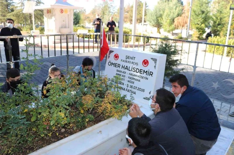 Kayseri İstiklal Özel Eğitim Meslek Okulu öğrencileri, ’Kiminin Duası’ projesi kapsamında 15 Temmuz kahramanı Astsubay Kıdemli Başçavuş Ömer Halisdemir’in Niğde’deki kabrini ziyaret etti.