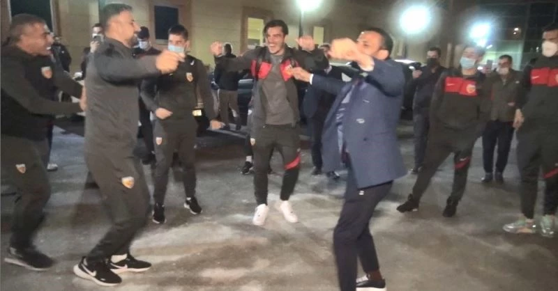 Hes Kablo Kayserispor, Hatayspor galibiyeti sonrasında tesislerde davul zurnayla karşılandı.