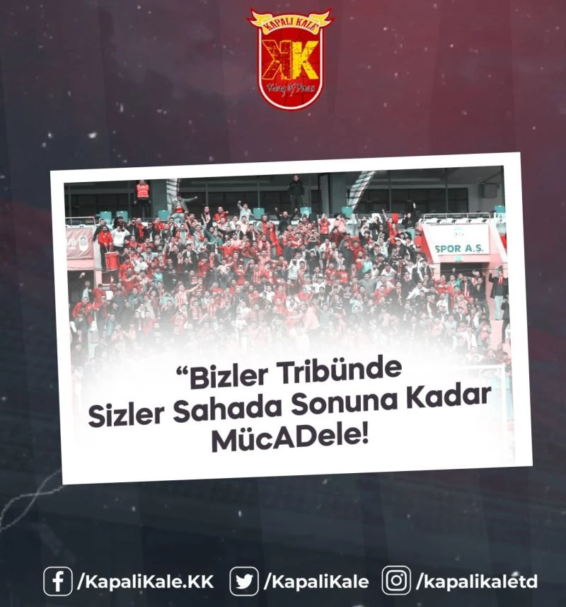 Kapalı Kale taraftar grubu, pazar günü oynanacak Yukatel Kayserispor-Altay maçı için takıma destek çağrısında bulundu ve futbolseverleri maça davet etti.