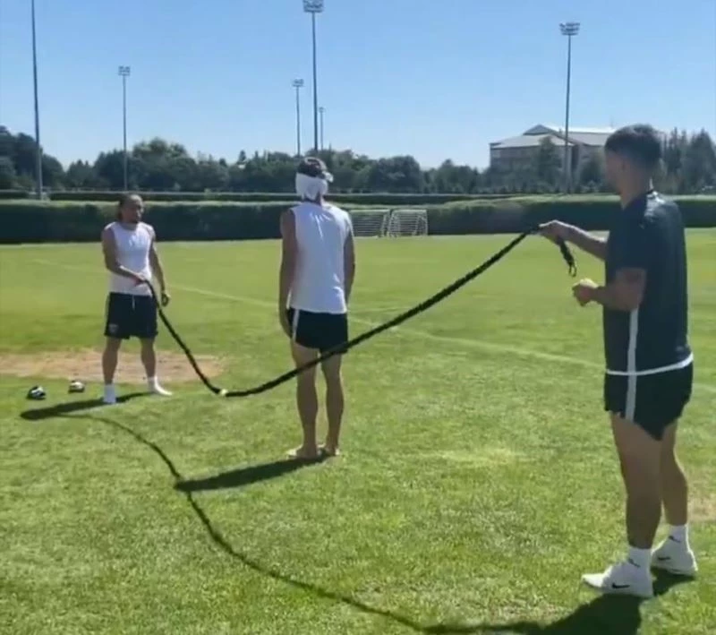 Süper Lig 2020-2021 futbol sezonu hazırlıklarını sürdüren Hes Kablo Kayserispor’da antrenmanlar neşe içinde sürdürülüyor. Karpuzatan tesislerindeki son antrenmanda sarı kırmızılı takımın Brezilyalı futbolcusu Gustavo Campanharo’ya şaka yapıldı. Cep telefonu kamerası tarafından kayıt altına alınan şakada, Kayserispor antrenmanında Ziya Alkurt ile Cristian Sapunaru ip sallarken gözü kapalı olan Gustavo da, ipin üzerinden atlıyor.