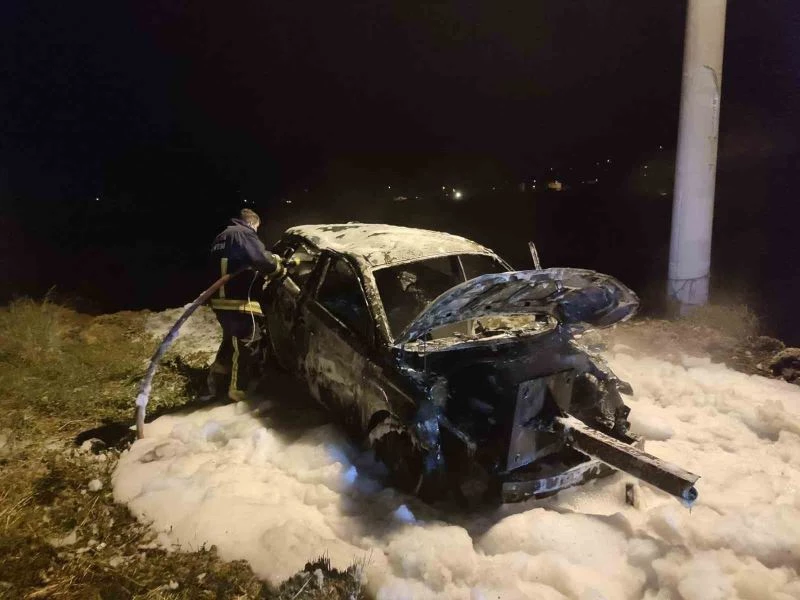 Antalya’nın Gazipaşa ilçesinde bir araç direksiyon hakimiyetini kaybederek reklam tabelasının direğine çarptı. Çarpmanın etkisi ile otomobil alev aldı.