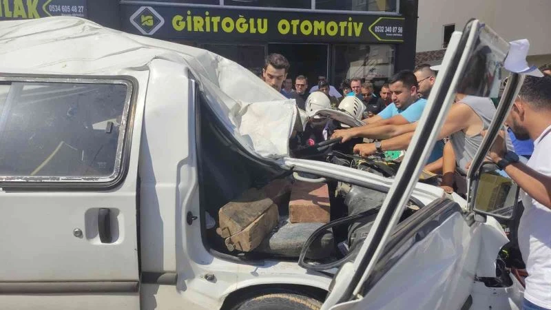 Kaza sonrası araçta sıkışan sürücü için vatandaşlar ve ekipler seferber oldu