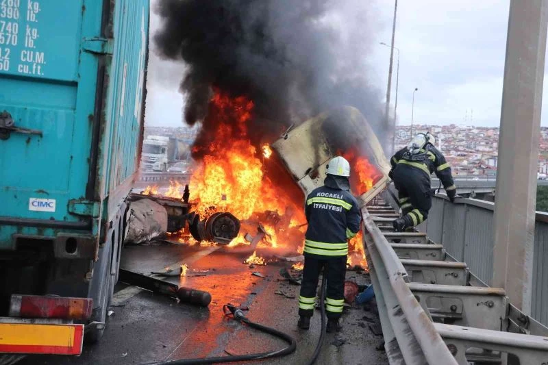 Kocaeli TEM otoyolu Kuruçeşme mevkiinde kaza sonrası bir tırda yangın çıktı. TEM otoyolu trafiğe kapatıldı.