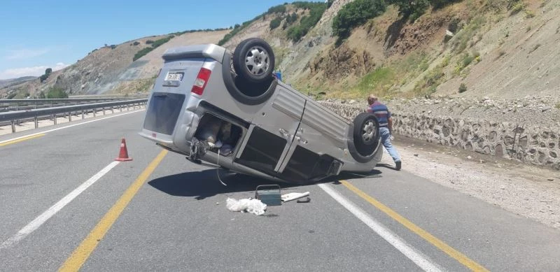 Kaza ucuz atlatıldı, ters dönen araçta 1 kişi yaralandı
