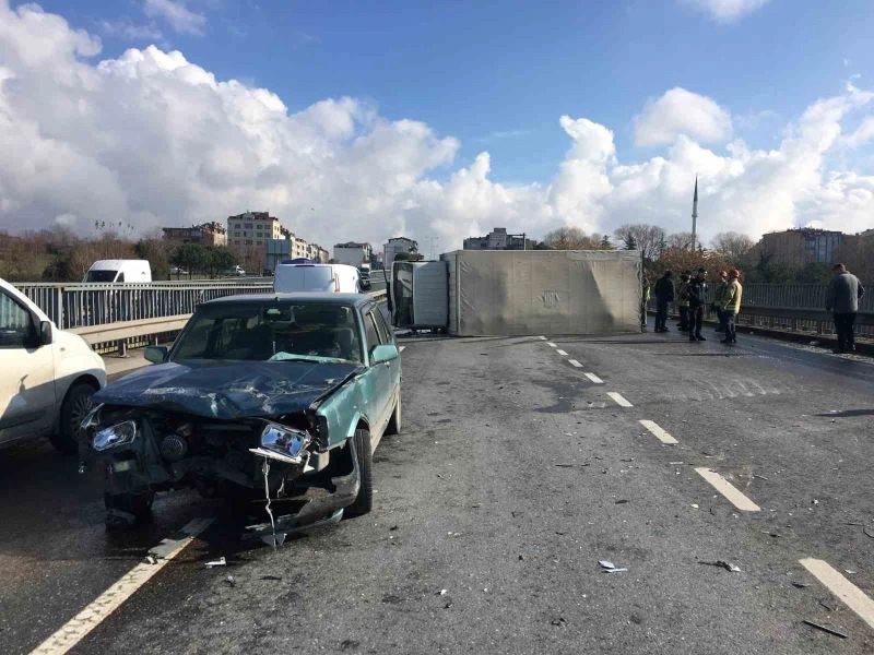 Bayrampaşa’da sürücüsünün direksiyon hakimiyetini kaybettiği otomobilin, aynı yönde ilerleyen kamyonete çarpması sonucu meydana gelen trafik kazasında kamyonet sürücüsü araçta sıkıştı. İtfaiye ekipleri tarafından kamyonetten çıkarılan sürücü ambulans ile hastaneye kaldırılırken, kaza nedeniyle bölgede kısa süreli trafik yoğunluğu oluştu.