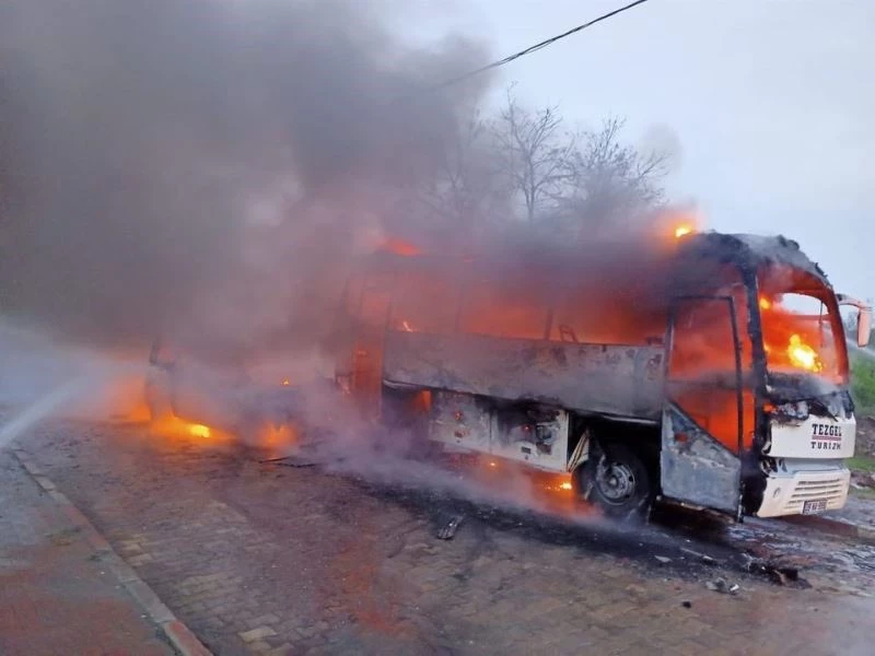 Kırklareli’de duran midibüse hafifi ticari aracın çarpması sonucu çıkan yangında 2 araç kullanılamaz hale geldi.
