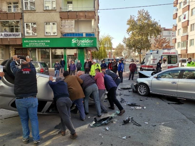 Kayseri’nin Melikgazi ilçesinde iki otomobilin çarpışması sonucu meydana gelen trafik kazasında otomobillerden biri ters döndü. Kazada 3 kişi yaralandı.