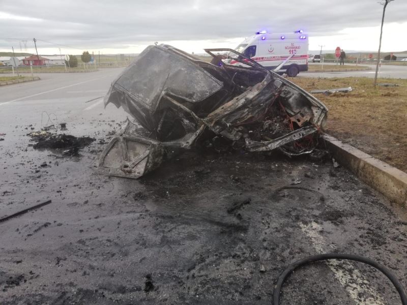 Çorum’un Sungurlu ilçesinde kontrolden çıkan otomobil devrildi. Kazanın ardından yanmaya başlayan araçtaki sürücü yaralandı.